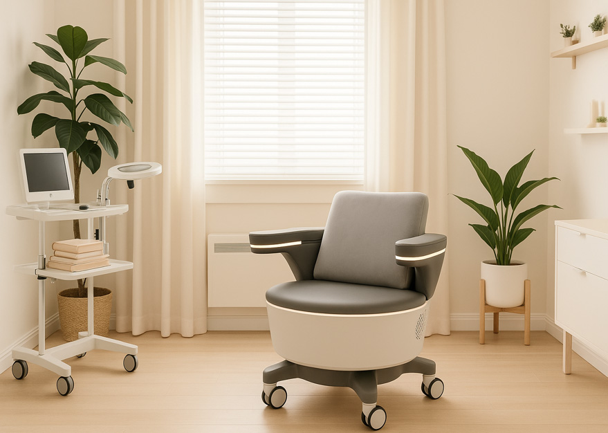 A Pelvicare Chair é uma solução revolucionária que utiliza tecnologia HIFEM (High-Intensity Focused Electromagnetic) de última geração para fortalecer o pavimento pélvico de forma 100% não invasiva, segura e confortável.